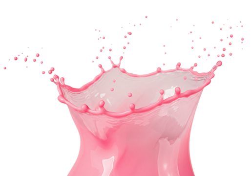 Pink liquid splash dynamic pour creamy texture translucent isolated beverage food photography design element advertising packaging
