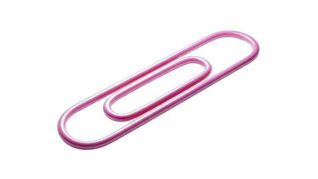 Abstract minimalist pink paperclip on transparent background