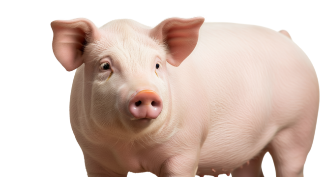 Pink pig standing isolated on transparent background, a domestic farm animal