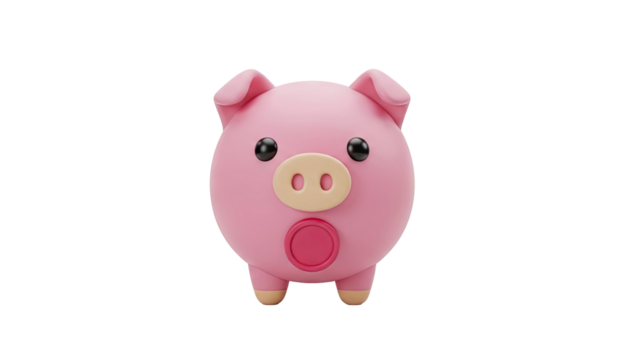 Pink piggy bank symbolizing savings and investments, set against a transparent background, emphasizing financial security and growth
