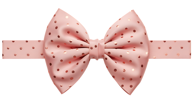 A delicate pink bow with golden polka dots perfect for design use on transparent background.