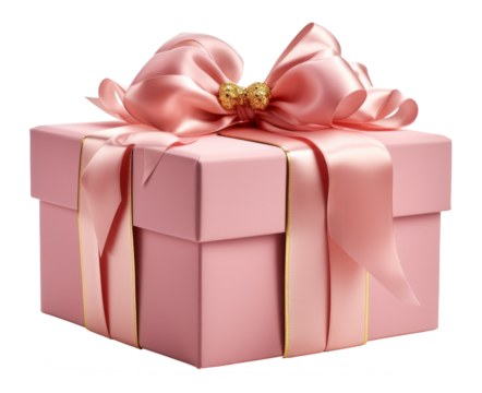 Illustrated pink gift box with red ribbon on transparent background