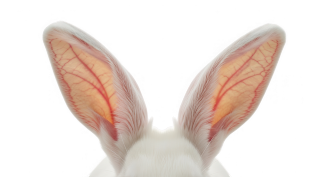 Closeup of a rabbits translucent ear with visible veins isolated on transparent background