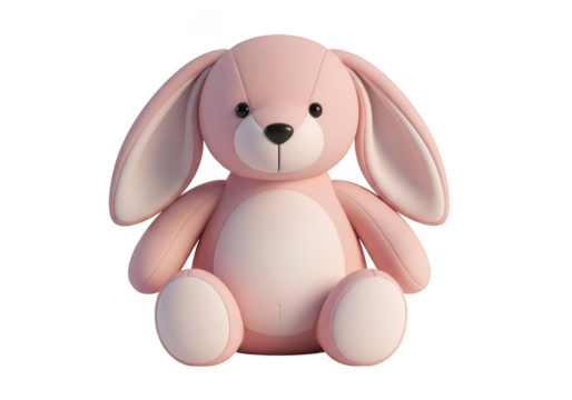 Pink Bunny Plush Toy Sitting on transparent background, Cute Cartoon Character for Kids and Babies
