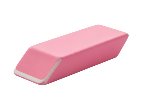 Pink and white rectangular eraser, with rounded edges, isolated on a white or transparent background, cutout, PNG