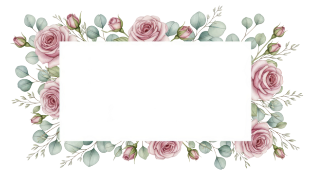 Watercolor dusty pink rose and eucalyptus greenery frame Elegant floral border for wedding invitation and save the date card High quality illustration