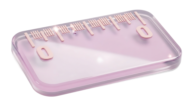 A pink plastic ruler with measurement markings, isolated on a transparent background