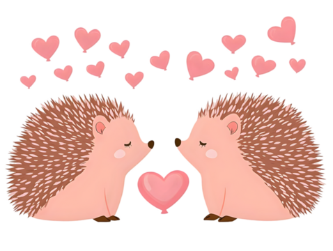 Cute Hedgehog Couple with Hearts Illustration on Transparent Background