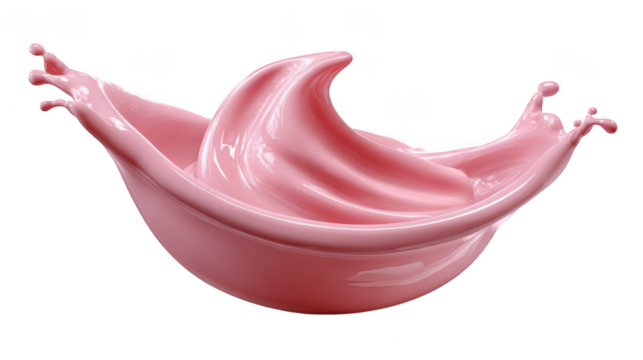A swirl of vibrant pink cream creates a dynamic splash, isolated on transparent background