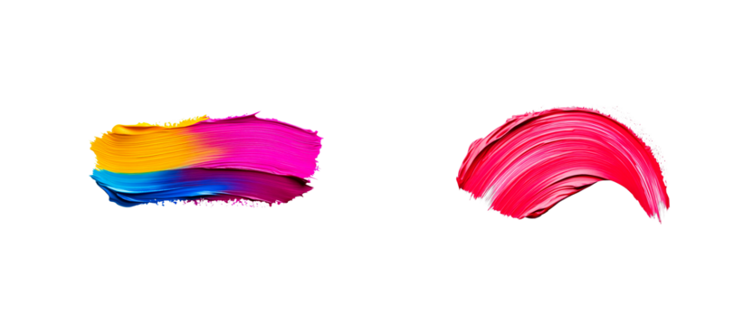 Vivid brushstrokes of yellow, blue, and pink paint, cut out transparent