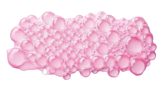 Pink soap suds with bubbles creating a textured background on transparent background