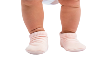 Two pairs of pastel pink baby socks 3D render standing side by side on transparent background