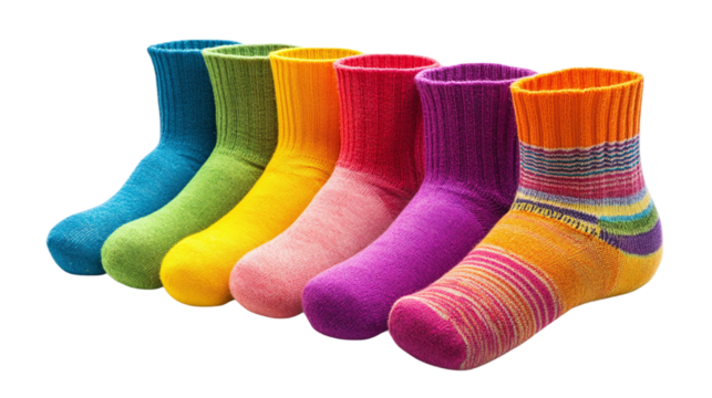 Pair of pink and blue ankle socks isolated PNG on transparent background, casual footwear for sports and everyday wear