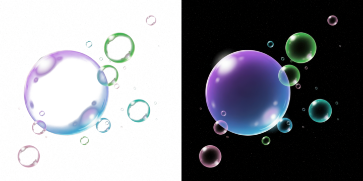 A colorful illustration of iridescent bubbles floating in space against a black background