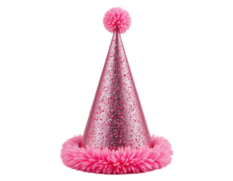 Glamorous Pink Party Hat with Sparkle and Fluffy Trim Decoration