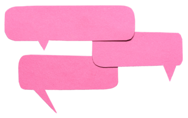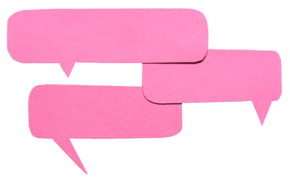 Pink blank cut out cardboard paper speech bubbles with copy space for text on transparent background design elements