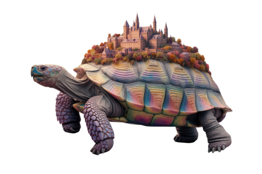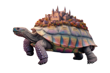 Majestic Tortoise with Castle on Colorful Rocks