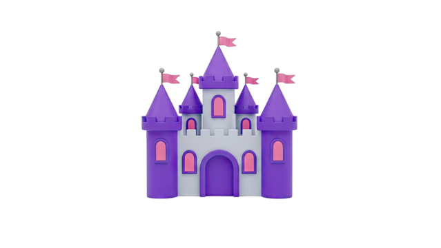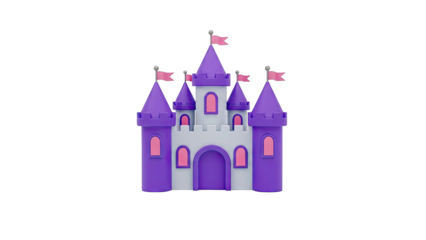 Purple and Gray Cartoon Castle with Pink Flags