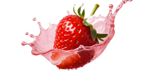 PNG Strawberries in pink splash and oats in milk splash element set on transparent background.