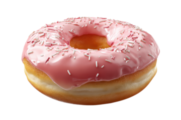 Vibrant pink donut illustration with transparent background, lively sprinkles