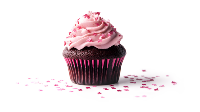 Cupcake with Mint Frosting and Pink Sprinkles in Pink Wrapper - Close Up
