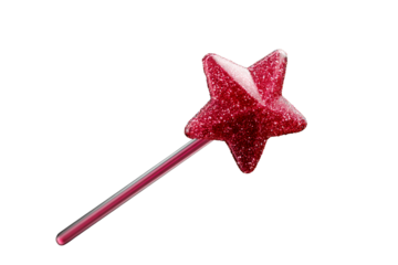 Pink star wand on transparent background for magic themes