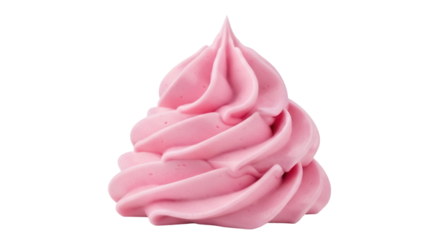 Isolated swirl of pink frosting, topping dessert sweet treat, cake decoration swirl, pink icing