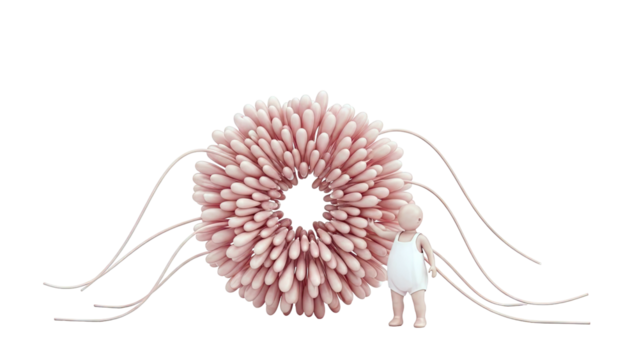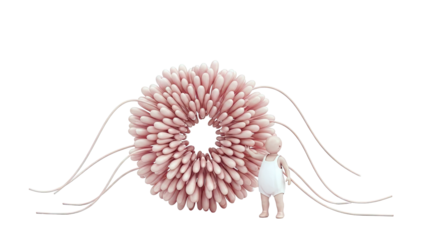 Stylized pink jellyfish with floating tentacles on transparent