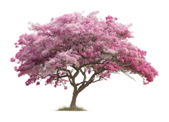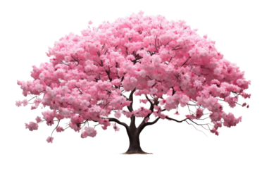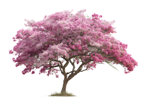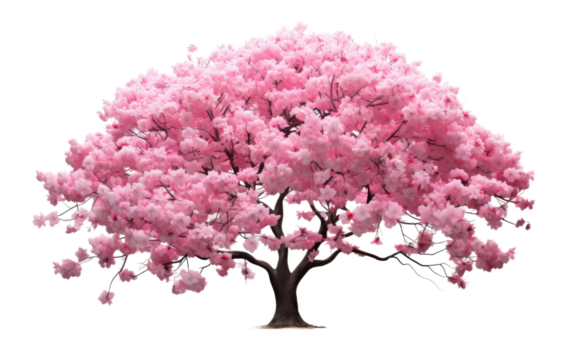 Blooming pink tree in a nature serenity. Isolated on transparent background, png.