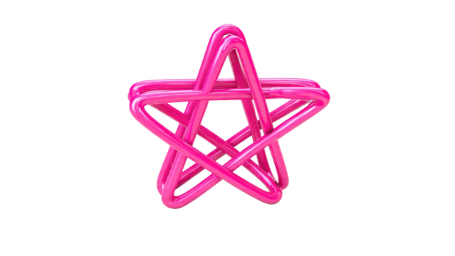 A vibrant, glossy pink 3D star shape formed by intertwined tubular elements, creating an abstract and modern geometric design. background removed