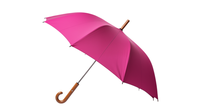 A single pink umbrella with a curved handle isolated on transparent background