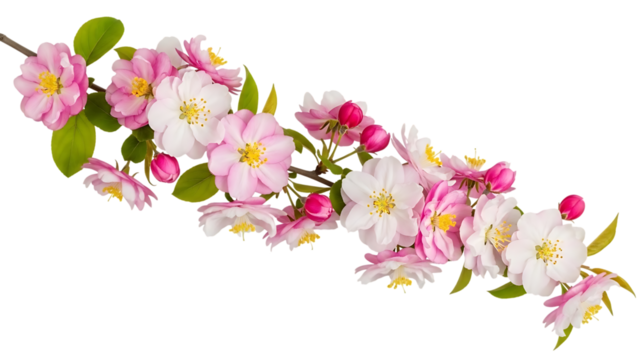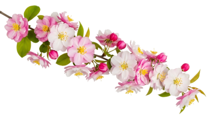 Pink and white flowers on a branch with green leaves isolated on a transparent background pink flowers 1
