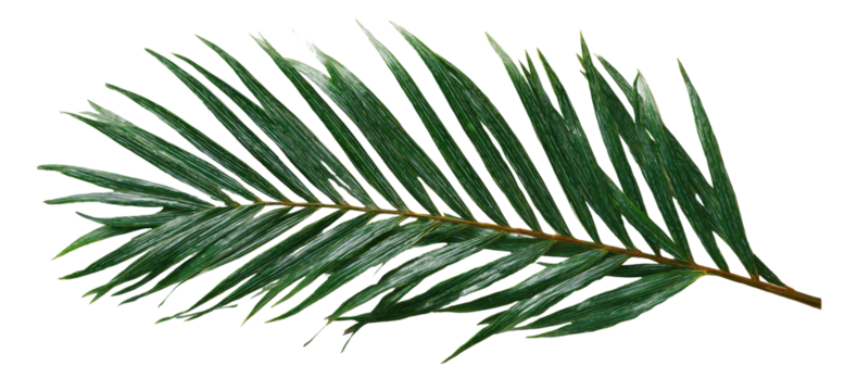Two pinnate leaves showing contrast between bright green and muted bluegreen foliage isolated on transparent background
