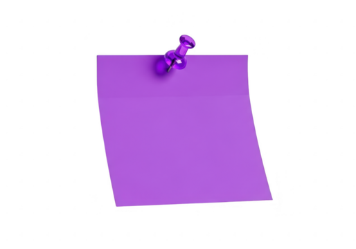 Purple note pinned up reminder message board notice stationery blank on transparent background
