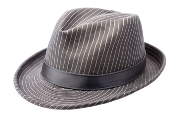 Gray pinstripe fabric fedora with a tailored look ideal for smart casual outfits