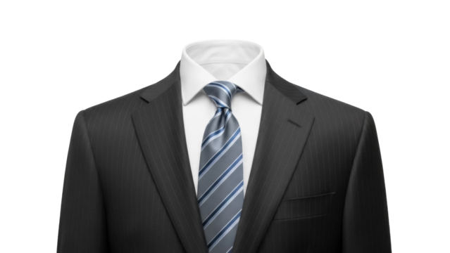 Elegant pinstripe suit with blue tie isolated PNG, formal attire for business or special occasions on transparent background