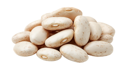 A close up overhead view of a pile of dried pinto beans isolated on transparent background