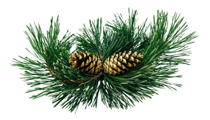 Isolated Pine Branch with Brown Cones and Green Needles for Decoration and Christmas Projects