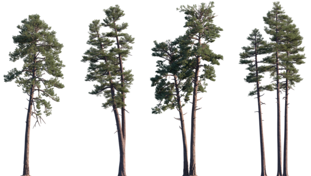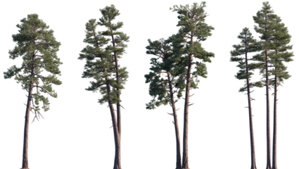 Set of Pinus ponderosa and Pinus radiata frontal isolated png on a transparent background perfectly cutout