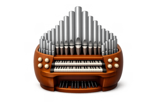 Antique Pipe Organ Console on Transparent Background