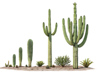 Set of Saguaro Cactus plants Cacti on AI generated by PNG