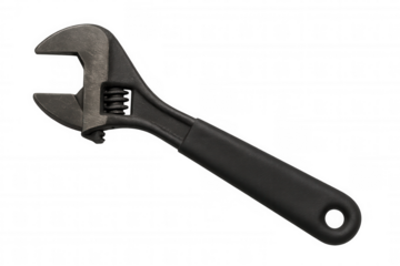 Adjustable metal wrench tool with open jaws for plumbing and mechanic work on transparent background