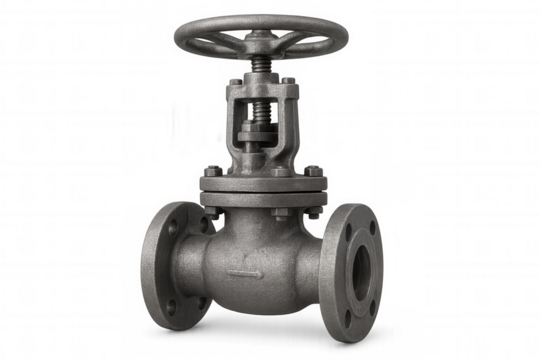 Metal industrial valve with round handle on transparent background, ideal for plumbing and pipeline projects