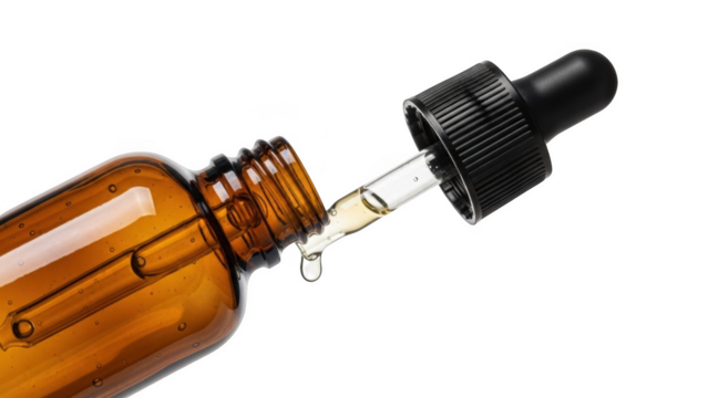 Serum bottle with pipette on a transparent background for skincare ad.