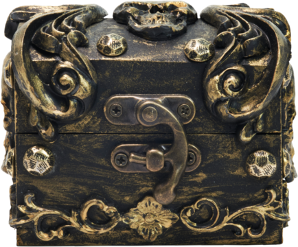Caja arcón cerrada de madera estilo antiguo. Imagen aislada. Fondo transparente