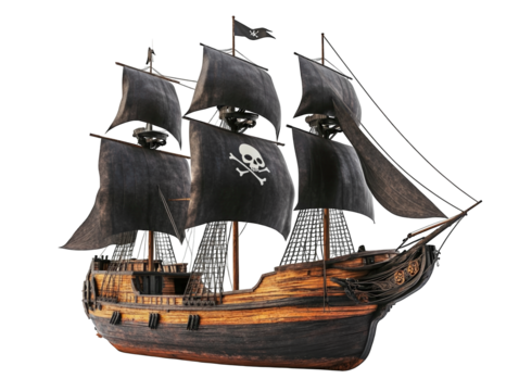 Isolated Tattered Pirate Flag with Skull and Crossbones Motif