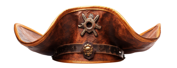 A pirate hat with bronze decoration, displayed on a transparent background in front view.