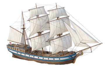 Ancient pirate ship illustration in PNG style with transparent background for nautical and maritime-themed designs and projects