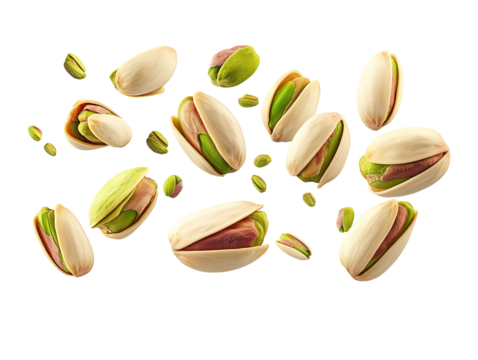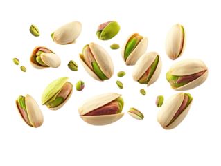 Flying delicious pistachios. Isolated on Transparent background.