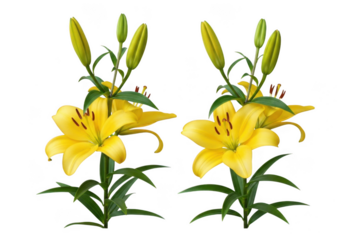 Lily flower yellow bloom green stem plant garden nature isolated on transparent background